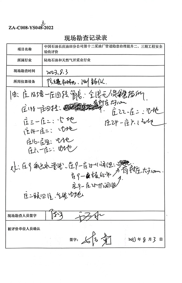 中國石油長慶油田分公司第十二采油廠管道隱患治理提升二、三期工程安全驗收評價報告