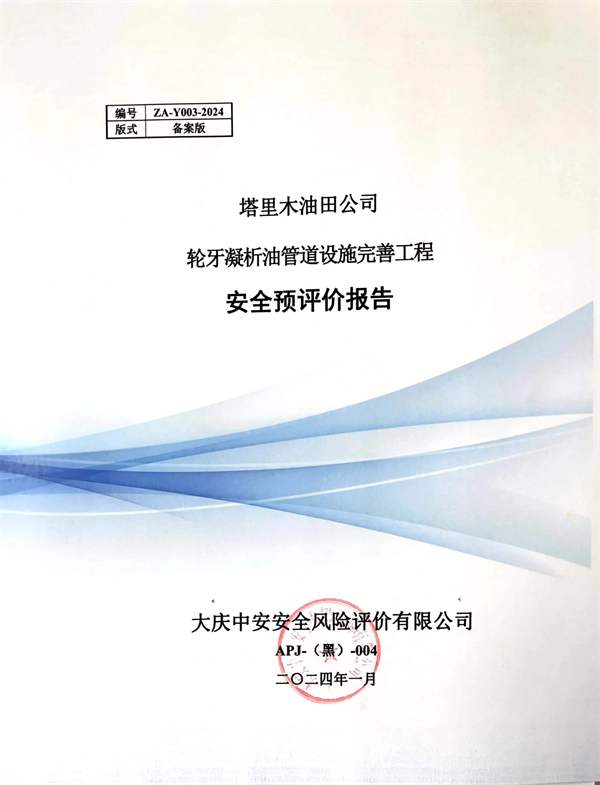 塔里木油田公司輪牙凝析油管道設施完善工程安全預評價報告