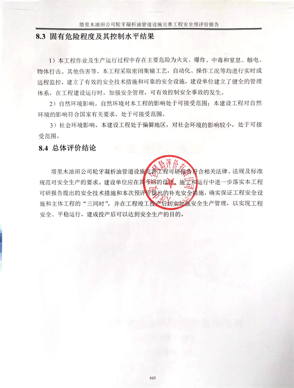 塔里木油田公司輪牙凝析油管道設施完善工程安全預評價報告 |