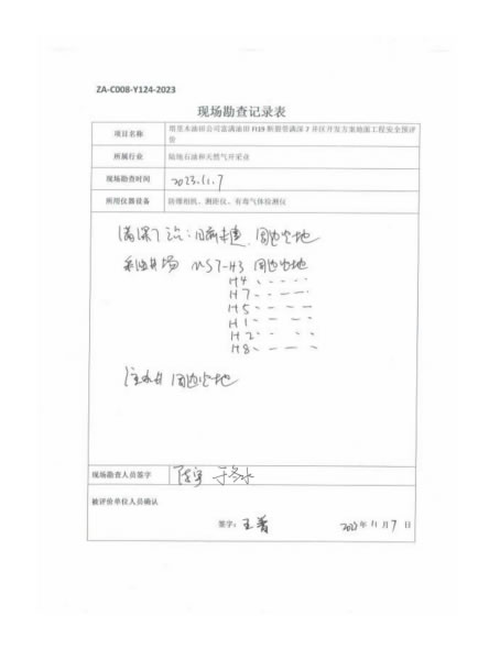 對(duì)擴(kuò)建站場新建設(shè)備與已建設(shè)備的防火間距進(jìn)行檢查,對(duì)新建井場的周邊環(huán)境進(jìn)行檢查評(píng)價(jià)。 |