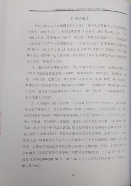 大慶鉆探工程公司鉆井二公司鉆井施工項目安全現(xiàn)狀評價報告信息公示表