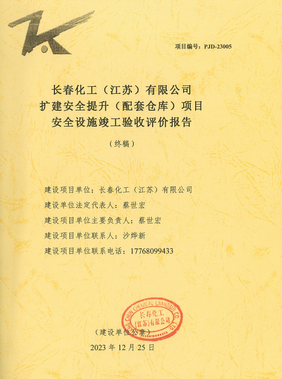 長春化工(江蘇)有限公司擴(kuò)建安全提升(配套倉庫)項(xiàng)目安全設(shè)施竣工驗(yàn)收評價(jià)報(bào)告