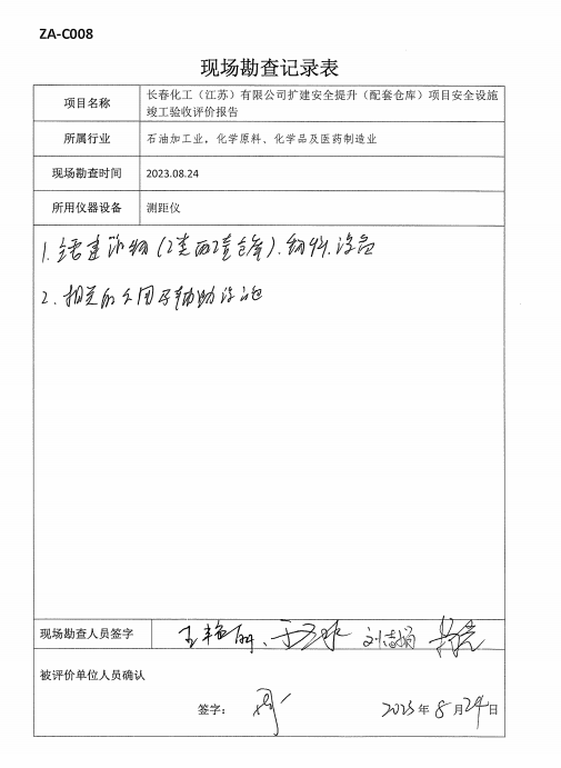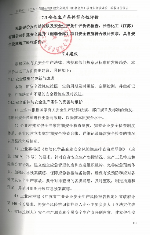 長春化工(江蘇)有限公司擴(kuò)建安全提升(配套倉庫)項(xiàng)目安全設(shè)施竣工驗(yàn)收評價(jià)報(bào)告 |