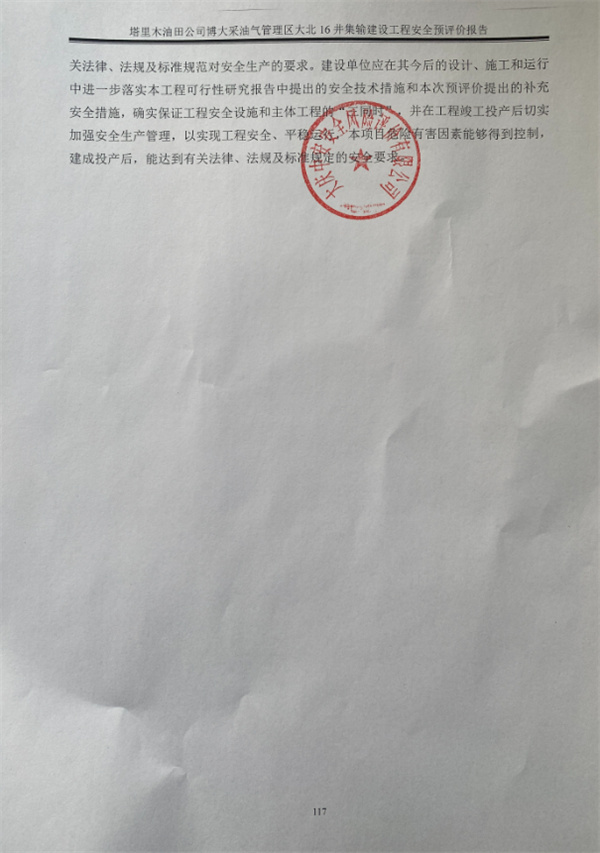 塔里木油田公司博大采油氣管理區(qū)大北16井集輸建設(shè)工程安全預(yù)評(píng)價(jià)報(bào)告