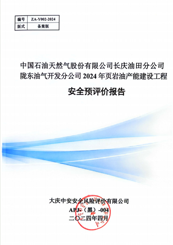 中國(guó)石油天然氣股份有限公司長(zhǎng)慶油田分公司隴東油氣開發(fā)分公司2024年頁(yè)巖油產(chǎn)能建設(shè)工程安全預(yù)評(píng)價(jià)報(bào)告 |