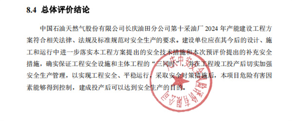 中國石油天然氣股份有限公司長慶油田分公司第十采油廠2024年產(chǎn)能建設(shè)工程方案符合相關(guān)法律、法規(guī)及標(biāo)準(zhǔn)規(guī)范對安全生產(chǎn)的要求。建設(shè)單位應(yīng)在其今后的設(shè)計、施工和運行中進(jìn)一步落實本工程方案提出的安全技術(shù)措施和本次預(yù)評價提出的補(bǔ)充安全措施,確實保證工程安全設(shè)施和主體工程的“三同時”,并在工程竣工投產(chǎn)后切實加強(qiáng)安全生產(chǎn)管理,以實現(xiàn)工程安全、平穩(wěn)運行,采取安全對策措施后,本項目危險有害因素能夠得到控制,建成投產(chǎn)后可以達(dá)到安全生產(chǎn)的目的。 |