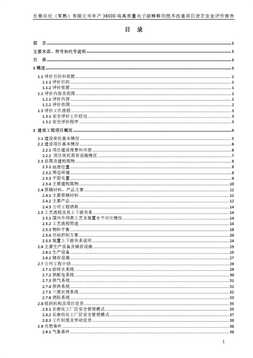 長春應(yīng)化(常熟)有限公司年產(chǎn)36000噸高質(zhì)量電子級稀釋劑技術(shù)改造項目設(shè)立安全評價報告 |