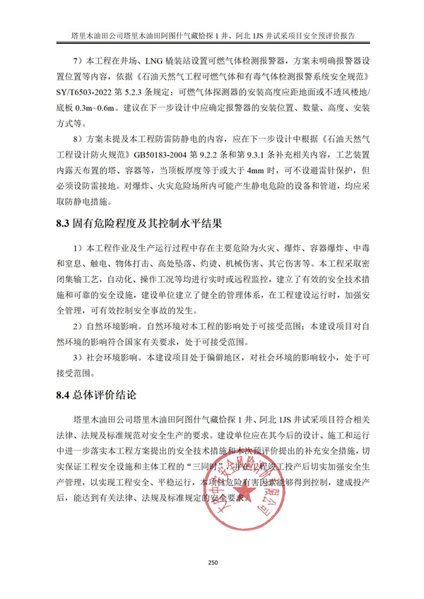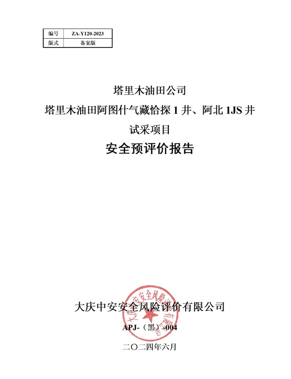 塔里木油田公司塔里木油田阿圖什氣藏恰探1井、阿北1JS井試采項(xiàng)目安全預(yù)評(píng)價(jià)報(bào)告