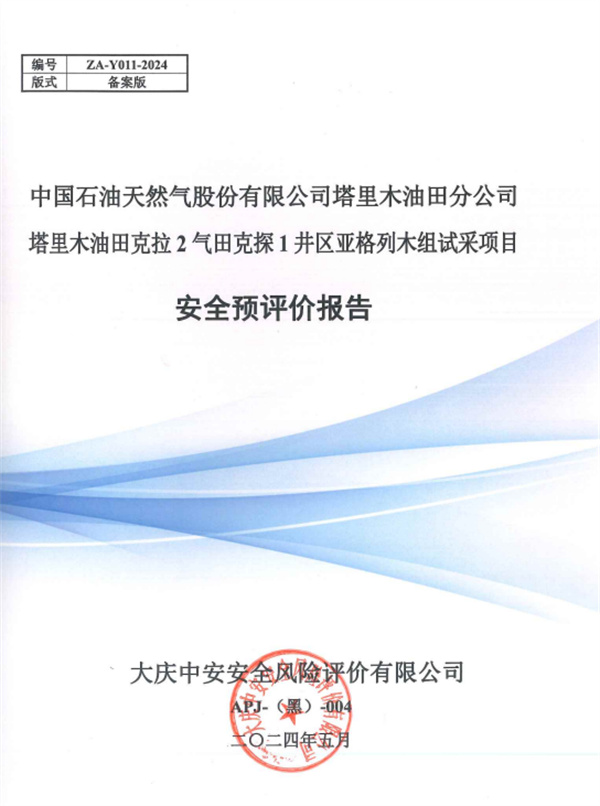 中國石油天然氣股份有限公司塔里木油田分公司塔里木油田克拉2氣田克探1井區(qū)亞格列木組試采項目安全預(yù)評價報告