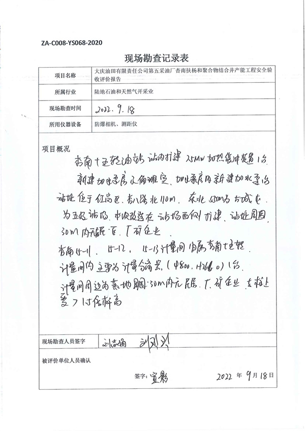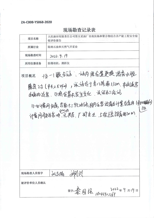 大慶油田有限責(zé)任公司第五采油廠杏南扶楊和聚合物結(jié)合井產(chǎn)能工程安全驗(yàn)收評(píng)價(jià)報(bào)告 |