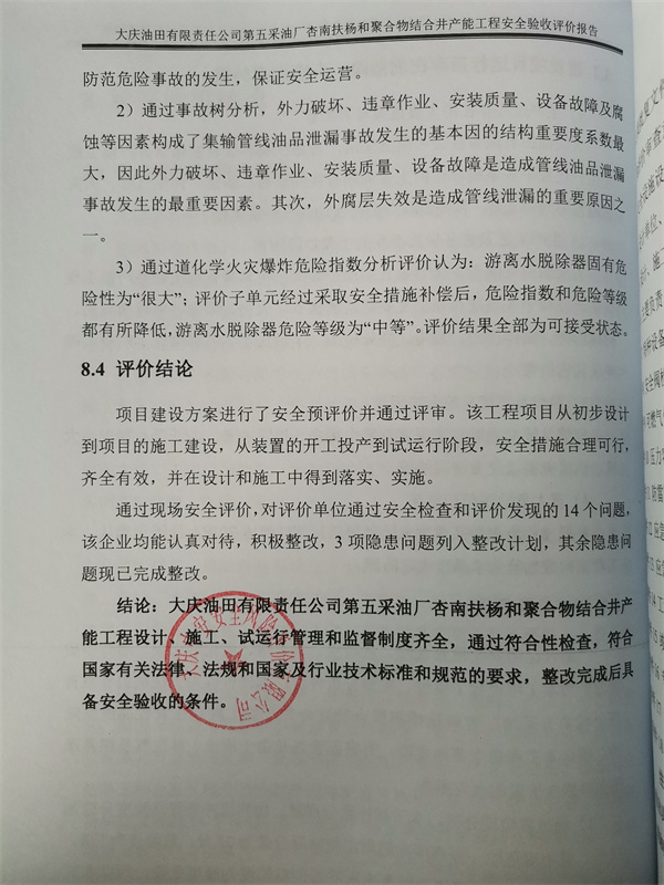 大慶油田有限責(zé)任公司第五采油廠杏南扶楊和聚合物結(jié)合井產(chǎn)能工程安全驗(yàn)收評(píng)價(jià)報(bào)告