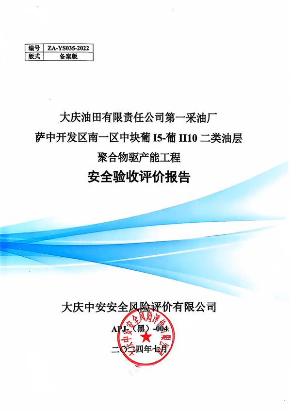 大慶油田有限責(zé)任公司第一采油廠薩中開發(fā)區(qū)南一區(qū)中塊葡I5-葡II10二類油層聚合物驅(qū)產(chǎn)能工程安全驗收評價報告