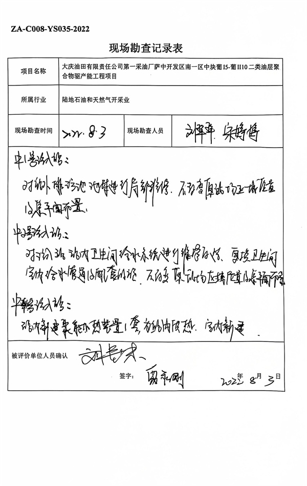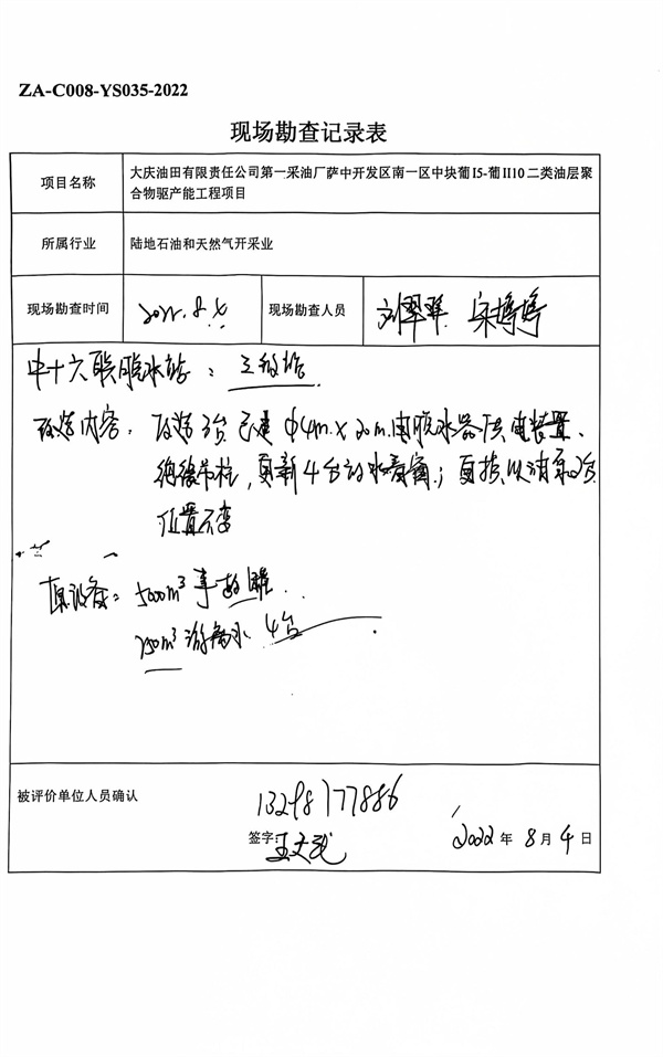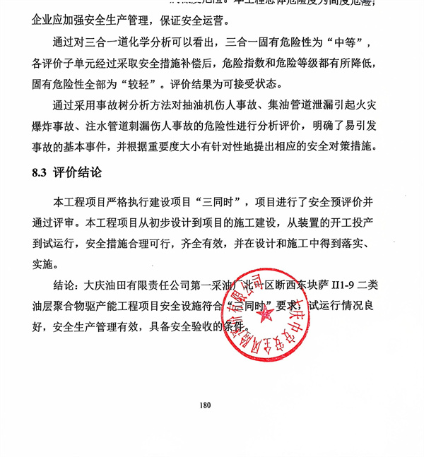 大慶油田有限責(zé)任公司第一采油廠薩中開發(fā)區(qū)南一區(qū)中塊葡I5-葡II10二類油層聚合物驅(qū)產(chǎn)能工程安全驗收評價 |