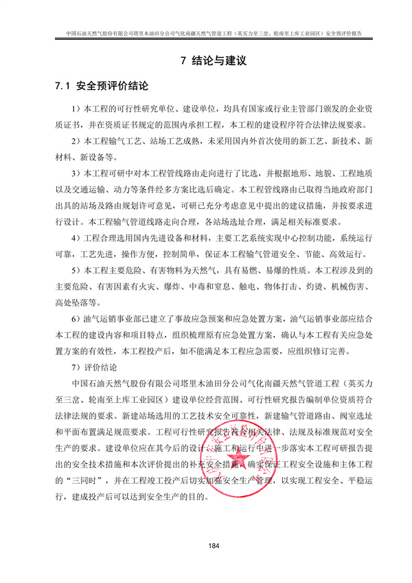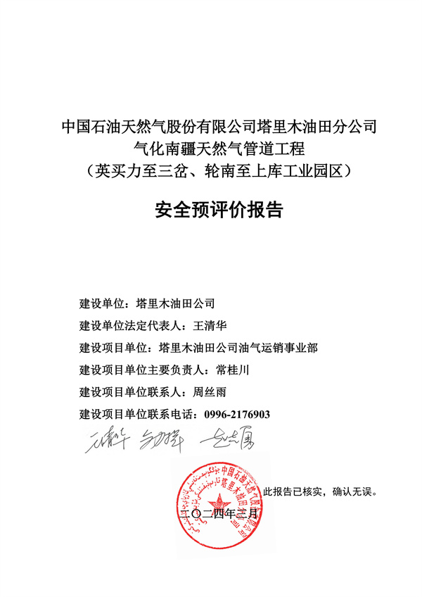 中國(guó)石油天然氣股份有限公司塔里木油田分公司氣化南疆天然氣管道工程(英買力至三岔、輪南至上庫(kù)工業(yè)園區(qū))安全預(yù)評(píng)價(jià)