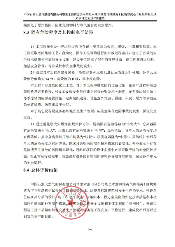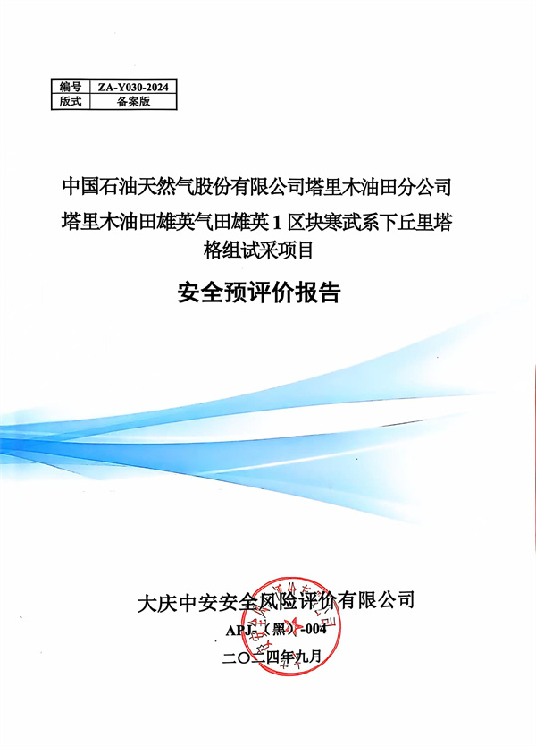 中國石油天然氣股份有限公司塔里木油田分公司塔里木油田雄英氣田雄英1區(qū)塊寒武系下丘里塔格組試采項(xiàng)目安全預(yù)評(píng)價(jià)報(bào)告 |