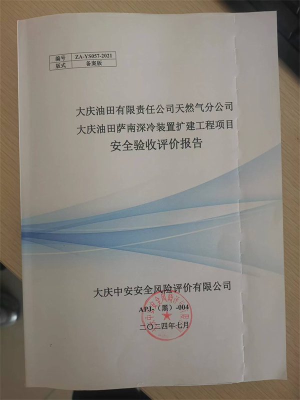 大慶油田有限責(zé)任公司天然氣分公司大慶油田薩南深冷裝置擴(kuò)建工程項(xiàng)目安全驗(yàn)收評(píng)價(jià)報(bào)告